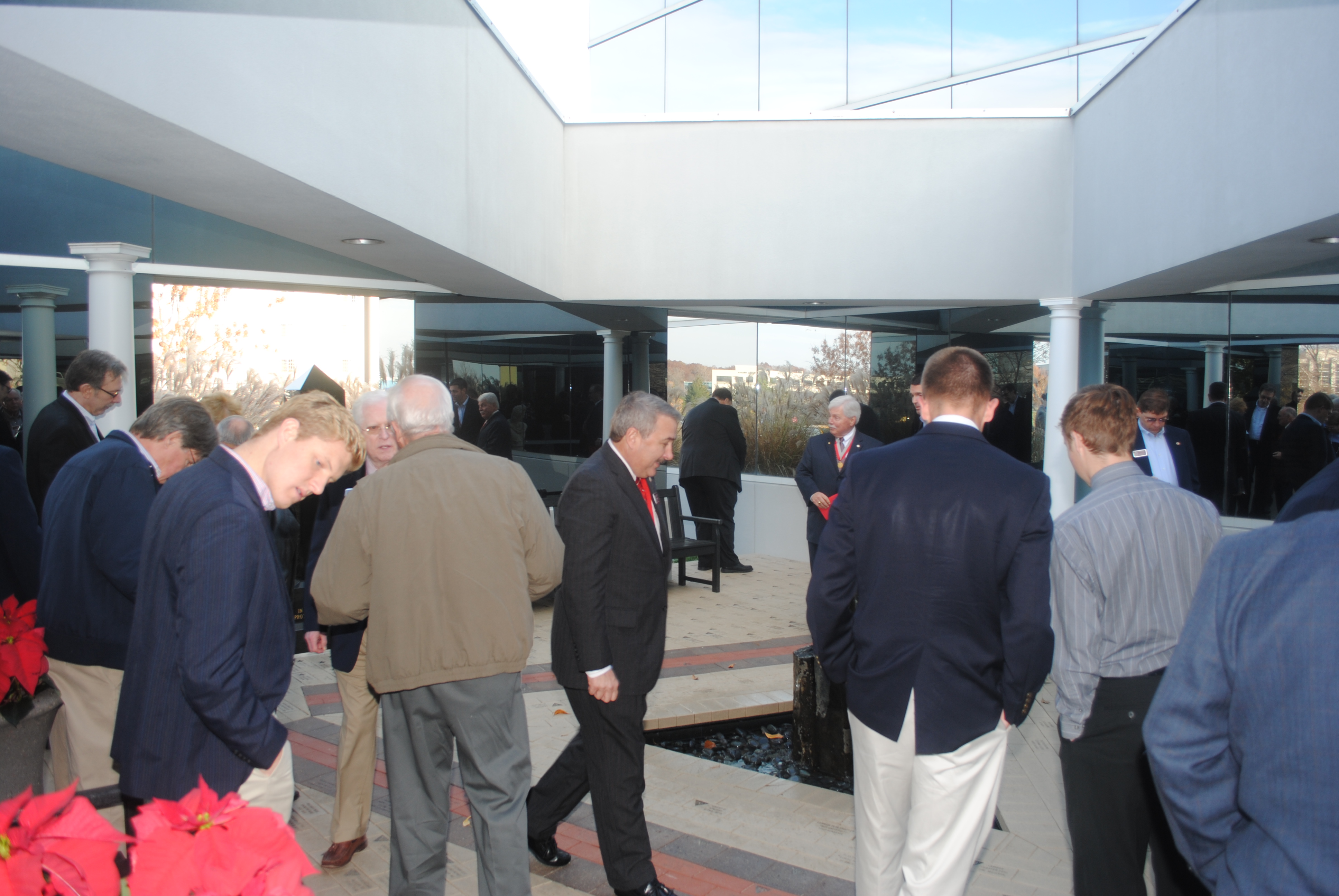 Venerable Grand Prytanis Bob Barr and TEF Board Chairman Richard "Ernie" Ernest cut the ribbon to officially open the courtyard for public viewing. Walking across the courtyard, bricks read off names of Fraters who have passed into the chapter eternal, founding fathers of specific chapters, nicknames and collegiate catch phrases, and even one brick that read, "For Those Who Are Yet To Join."