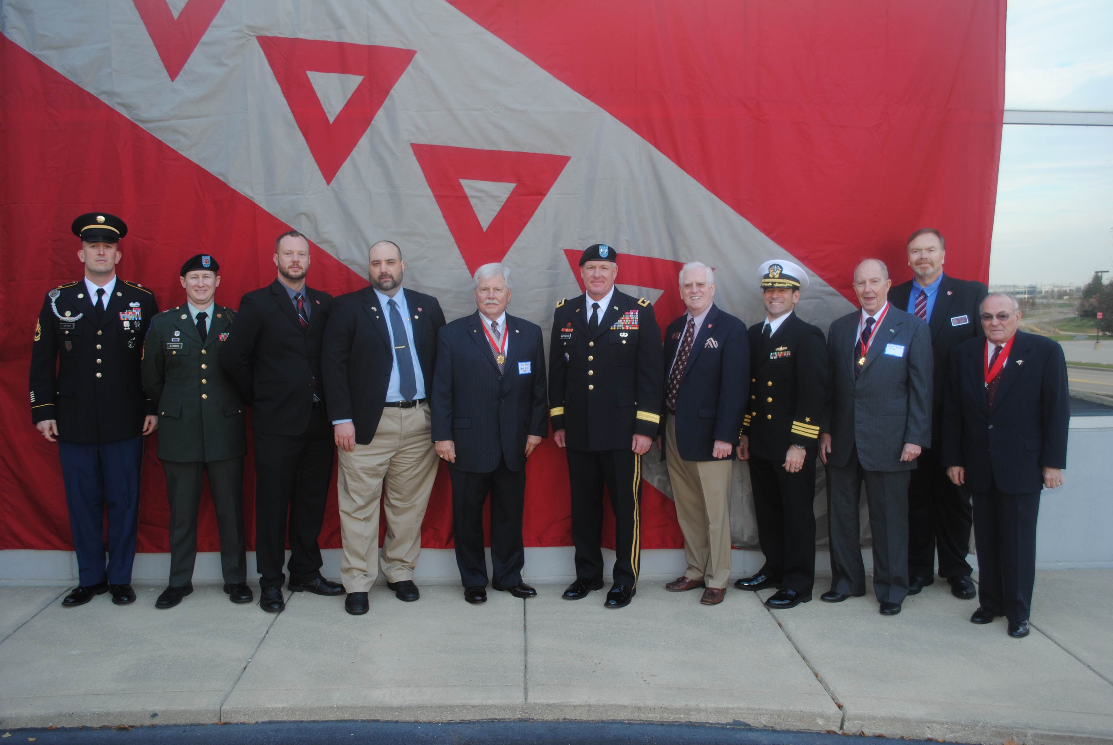 Members of the Order of the Shield Alumni Association were in attendance to honor those who have served and who are honored in the courtyard. The TKE Military Monument in the courtyard reads: