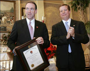 LITTLE ROCK, Ark. -- Arkansas Gov. Mike Huckabee, who is eyeing a 2008 presidential bid, signed the Beta-Psi Chapter scroll and became a Frater Tuesday. Frater Huckabee, a Republican, joined TKE in a ceremony at the governor's mansion.