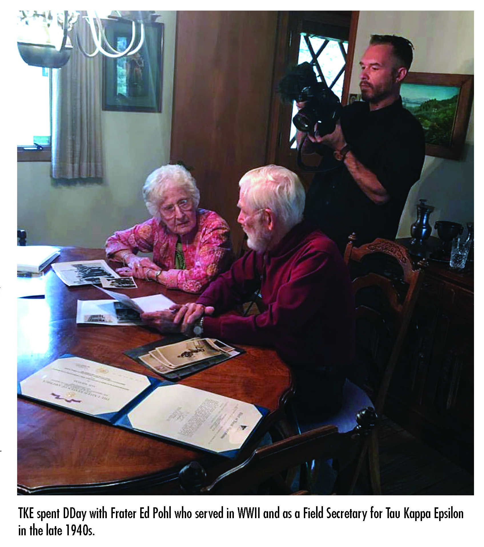 TKE changed his life tremendously. Had it not been for the contacts he made, and the experience he gained, he would not have been in the Foreign Service. It was a waterfall effect. When asked how TKE has impacted his life, Frater Pohl said he had never really considered it before, but it had impacted his life greatly: “Had it not been for TKE, I wouldn’t have joined the Foreign Service. It went right down the line; I saw all these countries, met the love of my life, married over 60 years now. If it had not been for the experience with the Fraternity … my whole life was shaped by the Fraternity … and it has been a good life. I have enjoyed every minute of it.”